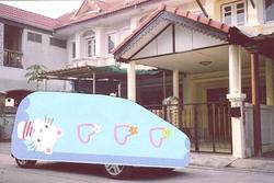 ที่จอดรถ พื้นปูกระเบื้องอย่างดีหลังคาประดับชายคาสวยงาม