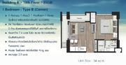 1) ตึก B ชั้น 19 หมายเลข B05B (ห้องมุม) ห้องขนาด 34.5 ตร.ม. 1 ห้องนอน, 1 ห้องน้ำ, 1 ห้องรับแขก, 1 Pantry (Built-in) พร้อมระเบียงส่วยตัว ขนาดพิเศษ, Air Ventilation ห้องรับแขกเปิดระบายอากาศได้ 2 ด้าน