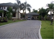 ลานจอดรถปูด้วยหินซีแพคโมเนียไปจนถึงประตูรั้วบ้าน