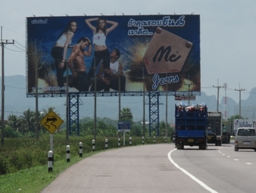 - ป้ายโฆษณาโครงเหล็กถักบนดิน