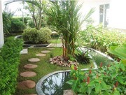 ภายนอก - มีจัดสวนระหว่างอาคาร บ่อน้ำ บ่อปลา ที่จอดรถ 3 คัน