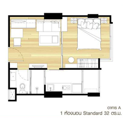 ห้องหัวมุม ชั้น 25 ขนาด 1ห้องนอน 32 ตร.ม. ตึก A ฝั่งสระว่ายน้ำ