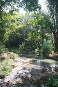 บรรยากาศดีมาก ด้านหลังเป็นภูเขาและติดลำธาร ที่ไหลมาจากน้ำตก (เดินไปน้ำตกประมาณ 1.5 กิโลเมตร)