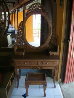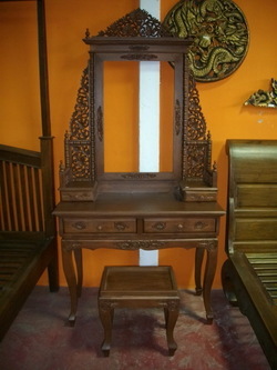 โต๊ะเครื่องแป้งลายโบราณไม้สัก