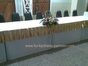บริการออกแบบ รับตัด ผ้าคลุมโต๊ะ ผ้าคลุมเก้าอี้ จับจีบแบบต่าง ๆ เก้าอี้พลาสติก 100.จัดเลี้ยง 120.T.081-6391852.