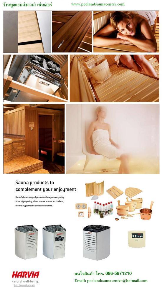 จำหน่ายอุปกรณ์ ได้แก่ เตาซาวน่า ถังน้ำ-กระบวยไม้สน เทอร์โม-ไฮโกรมิเตอร์ หินซาวน่า