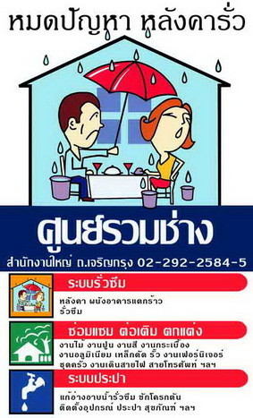ศูนย์รวมช่าง !! ซ่อมหลังคารั่วซึม ห้องน้ำรั่วซึม รับประกันผลงาน 1 ปี ติดต่อ (02) 292-2584-5