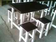 ** ไม้สนนอก ขนาด 70*70*75 พร้อมเก้าอี้ 4 ตัวชุดละ 1700บาท