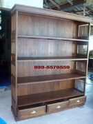 ตู้หนังสือไม้สักเก่า 4 ชั้นวาง ( 2 ลิ้นชักล่าง / 3 ลิ้นชักล่าง )