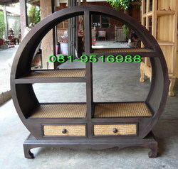 ตู้โชว์วงกลมไม้ 2 ลิ้นชักล่าง เฟอร์นิเจอร์ไม้แต่งบ้านสวยแบบล้านนา สวยมากค่ะ เหมาะกับทุกสถานที่ แต่งบ้าน โรงแรม กิจการเกสท์เฮาส์ ร้านสปา ที่พักต่าง ๆ