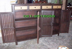 ตู้เคาน์เตอร์ไม้แต่งเสื่อ 4 ลิ้นชัก 3 ชั้นวาง