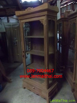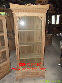 ตู้โชว์โบราณ ทรงตรง 4 ชั้น 1 บาน 1 ลิ้นชัก