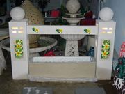 - หินทรายม่านน้ำติดดอกลีลาวดี สูง 100 cm กว้าง 120 cm น้ำไหลเป็นเส้นม่านน้ำลงบ่ออย่างสวยงาม เป็นน้ำล้นและโคมไฟได้ (ฟรีบ่อและปั๊ม) ราคาชุด 7,000บ. (บริการส่งฟรีถึงบ้านเฉพาะกรุงเทพฯ และปริมณฑล)