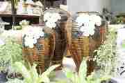 - โอ่งน้ำล้นหรือโอ่งน้ำผุดติดดอกลีลาวดีขนาดเล็ก สูง 55 cm กว้างและยาว 40 cm เป็นทำจากดินเผาด่านเกวียนบ่อกว้าง 60 x 60 cm ราคาชุดละ 3,500 บ.(รวมบ่อและปั๊ม)