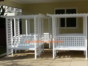 ซุ้มไม้ระแนง ซุ้มไม้ สีขาว จากไม้เนื้อแข็งทำสีขาว สวยงาม ราคาโรงงานเราเอง ราคาประหยัด เป็นซุ้มที่นั่ง หาไม้เลื้อย เลื้อยที่ซุ้มเพิ่มความสวยงาม และความร่มรื่น ให้กับผู้