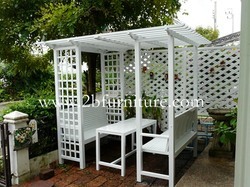 ซุ้มไม้ระแนง ซุ้มแฝด จากไม้เนื้อแข็ง ใช้เป็น ที่นั่งในสวนสวยของคุณ มีที่นั่งในบริเวณซุ้ม นั่งได้สูงสุด 6 ท่าน