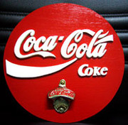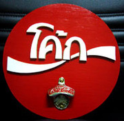 ขายแป้นไม้ติดที่เปิดขวด ลายเครื่องดื่มโค้ก เป๊บซี่ เบียร์ไฮเนเก้น และขายที่เปิดขวด