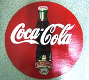 รูปที่ 1 - 4 แป้นไม้กลม ขนาด 30 cm ติดที่เปิดขวด Coca-Cola สีเงิน ติดตัวอักษรไม้ฉลุ สีขาว