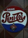 รูปที่ 5 แป้นไม้กลม ขนาด 30 cm ติดที่เปิดขวด Pepsi-Cola สีเงิน ติดอักษรไม้ฉลุ DRINK สีขาว , Pepsi-Cola สีแดง พี้นเพ้นท์สี แดง ขาว และน้ำเงิน