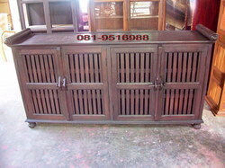 ตู้ไม้แต่งเสื่อแบบล้านนา 4 บานเปิด 3 ชั้นวาง