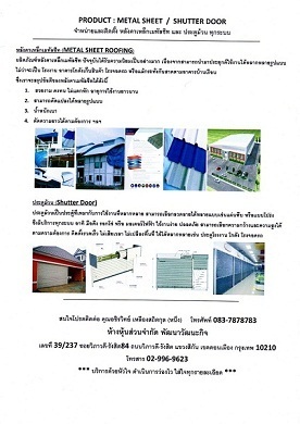 จำหน่ายและบริการติดตั้งหลังคาเมทัลชีท ไม่ว่าจะอลูซิงค์ และเคลือบสี มีหลายสีให้เลือกตามความชอบและตามฮวงจุ้ย แลบริการติดตั้งประตูม้วนทุกชนิด เช่น เหล็กเคลือบสี , แสตนด์เลส ทุกระบบ ไม่ว่าจะเป็นมือดึง , รอกโซ่ , และไฟฟ้า