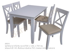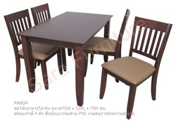 พร้อมเก้าอี้ไม้ 4 ตัว พื้นนั่งเบาะหุ้มด้วย PVC ง่ายต่อการทำความสะอาด