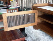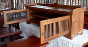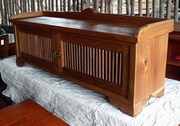 ทำจากไม้สักทองทั้งหลัง ออกแบบให้สามารถนั่งใส่รองเท้าบนตู้ได้ สวยงามทนทาน