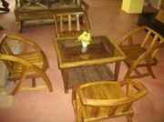 ชุดรับแขกไม้สักเหลี่ยมกระจก (เก้าอี้กบ)