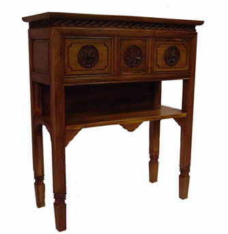 ใช้สำหรับ เป็นแท่นวางเครื่องสักการะ ท่านท้าวฯ จตุามรามเทพฯ หรือ เสด็จพ่อ ร.5 ทำด้วยไม้สักทองทั้งหลัง