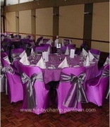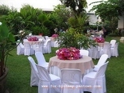 ออกแบบตัด ผ้าคลุมเก้าอี้ ผ้าคลุมโต๊ะ เก้าอี้จัดเลี้ยง เก้าอี้พลาสติก จับจีบระบาย เริ่มต้น 100. T.081-6391852