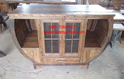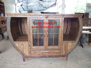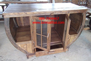 ทำจากไม้สักเก่า ตกแต่งด้วยวงล้อเกวียน 2 ประตู 1 ลิ้นชัก