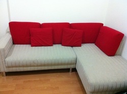รูปตัว L ขนาด ยาว 2.15 เมตร x กว้าง 0.85 เมตร ...ให้พร้อมหมอนอิง / ใบ สีแดง (ตามภาพ)
