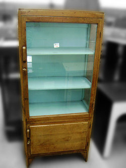 0043530003 ตู้โชว์ไม้สักทองภายในสีฟ้า