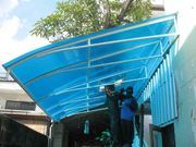กันสาดโพลีคาร์บอเนต โครงเหล็ก ตารางเมตรละ 1500 บาท