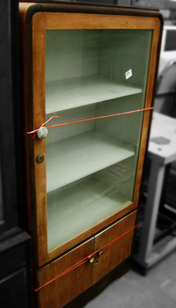 0040550001 ตู้โชว์ไม้สักขาเเชมเปญ