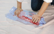A. รีดอากาศโดยใช้เครื่องดูดฝุ่น ซึ่งจะมีวาวล์เฉพาะเพื่อการดูดอากาศออก ซึ่งจะทำให้สามารถลดขนาดพื้นที่ได้ถึง 80%