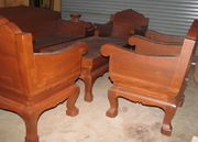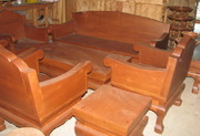 ชุดรับแขกไม้สัก 8 ตัว เป็นของใหม่ แต่ใช้ไม้สักเก่าทำ พื้นโต๊ะกลางเป็นไม้สักหนา 3 นิ้ว ส่วนพิ้นเก้าอี้ยาวและเดียวเป็น ไม้สัก 1 นิ้ว