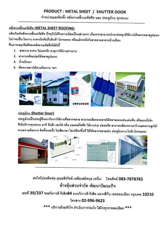 จำหน่ายและติดตั้ง หลังคาเมทัลชีท , ประตูม้วน , เคเบิ้ลไทล์ สินค้าดี ฝีมือเยี่ยม ราคาเหมาะสม