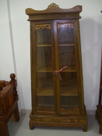 ขายตู้บานกระจกทรงพระไตรปิดก ใส่หนังสือ ทำจากไม้สักเก่า (แต่เป็นของใหม่) ราคาถูก