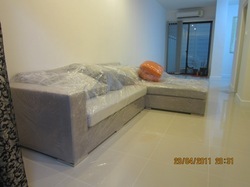 ต้องการขายโซฟา สภาพใหม่ ยังไม่ได้ใช้งานเลยค่ะ สั่งตัดพิเศษจากร้านศิริมาเฟอร์นิเจอร์ (เจ้าแม่โซฟา) โดยสั่งจองที่งานแฟร์ฯ ที่เมืองทองเมื่อเดือนกุมภาพันธ์ที่ผ่านมานี่เอง ได้รับสินค้าเมื่อวาน (20-4-54) แต่เนื่องจากตอนสั่งสินค้าใช้การประมาณขนาดเอาคือ กว้าง 280 x 180 cm. แต่พอมาวัดพื้นที่อีกที (พอดีบ้านเพิ่งเสร็จแม่เดือนที่แล้ว เรายังไม่ได้ย้ายเข้าอยู่ก็เลยยังไม่ค่อยคุ้นกับพื้นที่)พอเราได้ขนาดใหม่ เราก็รีบโทรหาเขาเพื่อสั่งตัดโซฟาและขอเขาลดขนาดเหลือ 260 x 180 แต่ถ้าเราลดอย่างนี้เหมือนกับว่าเขาต้องลดราคาให้เราด้วย เขาเลยขอว่าขอเป็น size 270 x 190 ได้ไหม ด้วยความที่เราเองก็เห็นว่าน่าจะโอเค (คิดเอาเอง) อีกอย่างลืมสังเกตว่ามีปลั๊กไปกับสายโทรศัพท์อยู่ด้านข้างด้วย พอเขาเอามาลงให้เมื่อวาน แฟนเราบ่นเราใหญ่เลยว่าซื้อของไม่คิด เพราะเหลือทางเดินให้เดินแค่นิดเดียว อีกอย่างโต๊ะกลางที่เราซื้อมาก็ตัวใหญ่อีก 120 cm แน่ะ เรากลัวแฟนบ่นเราเพิ่มอีกเราเลยกะว่าจะเอาโต๊ะกลางอันนั้นไปใช้ประโยชน์อย่างอื่น เลยบอกแฟนว่าคงต้องประกาศขายโซฟาแล้วล่ะ ทั้งๆ ที่เสียดายก็เสียดาย ผ้านุ่มมาก ใหญ่โต จะนั่งจะนอนก็สบายไปหมด สั่งมาเพื่อใช้เอง ก็ต้องเลือกที่ดีที่สุดอยู่แล้ว ถ้าไม่ติดเรื่องขนาดนี่ก็คงดี ก็เรานะไปนั่งเล่นที่งานแฟร์มาหลายรอบแล้ว เฮ้อ...แต่เรากะว่าถ้าเราขายได้เราก็คงจะสั่งแบบเดิมแต่แค่ให้ขนาดเล็กลง เพราะเราว่าร้านนี้เค้าทำของออกมาดี ไม่งั้นเราจะสั่งทั้งโซฟา แล้วยังมีแตียงอีก 2 หลังทำไม แบบว่าเห็นฝีมือแล้วก็ไม่อยากเปลี่ยน ใครต้องการโซฟาตามรูป ติดต่อเราได้เลยน่ะ เราตั้งราคาไว้ที่ 25,000 บาท ในชุดมีหมอนใหญ่ให้ 4 ใบ หมอนเล็ก 2 ใบ ความจริงหมอนเล็กต้องเป็นสีเทาเข้มเหมือนฐาน แต่ด้วยความที่เราอยากให้มันมีอะไรโดดเด่นเราเลยขอเขาเป็นสีส้ม แจ่มมากเลยเนาะ ราคานี้รวมค่าจัดส่งในกรุงเทพฯ แล้ว แต่ถ้าจะมารับของเอง ก็ยินดีลดราคาได้อีกค่ะ อ๋อ ตอนนี้ของอยู่ที่ หมู่บ้านซิกเนอเจอร์ กัลปพฤกษ์ สนใจติดจ่อมาได้นะค่ะ เพราะเราเองก็จะต้องรีบตัดสินใจเหมือนกัน ถ้าขายได้ช้าหรือขายไม่ได้ เราก็อาจจะแกะใช้เลย เพราะได้ฤกษ์เข้าอยู่บ้านวันที่ 5 พ.ค 54 นี้แล้ว ยังไงติดต่อมาได้นะค่ะ/อัญ 081-8664386, 084-6518092