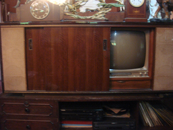 ขายโทรทัศใน์โบราณ มีวิทยุและเคื่องเล่นแผ่นเสียงนตัว(ใช้วิทยุได้อย่างเดียว) เครื่องเล่นแผ่นเสียงอยู่ด้วนในส่วนบน
