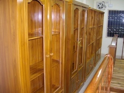 ขายตู้ใส่หนังสือ บานกระจก (ส่วนด้านล่างเป็นประตูบานทึบ) ทำจากไม้สัก (เป็นของใหม่) ราคาถูก