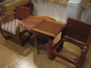 ชุดรับแขกขนาดเล็กไม้สัก 70 ปี ที่นั้งทะลุได้ มีเก้าอี้ 2 ตัวโต๊ะ 1 ตัว