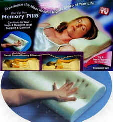 หมอนเมมโมรี่โฟม Memory Pillo หมอนเพื่อสุขภาพช่วยพยุงคอและหลังของตุณและคนที่คุณรัก (As seen on TV) เมมโมรี่โฟม คือฟองน้ำพิเศษที่มีความหนาแน่นกว่าฟองน้ำทั่วไป 5 เท่า และมีความยืดหยุ่นสูง สามารถรองรับสรีระร่างกายได้ทุกส่วน ได้รับการออกแบบให้มีรูปทรงที่สามารถรองรับศีรษะและต้นคอตามหลักสรีระศาสตร์ เมื่อเรานอนหมอนจะยุบรองรับพอดีกับศีรษะและและรองรับคอช่วยให้กระดูกข้อต่อคออยู่ในลักษณะพอดีไม่คดงอ ช่วยให้ระบบไหลเวียนโลหิตดี นอกจากนั้นยังมีส่วนโค้งลักษณะเป็นเบ้าเพื่อรองรับช่วงไหล่และข้อกระดูก สันหลังบริเวณช่วงบนได้อย่างพอดี เหมาะอย่างยิ่งสำหรับคนที่ชอบนอนหงายหรือตะแคง และผู้ที่มีอาการปวดหลังหรือ คอ เพื่อช่วยพยุงต้นคอ และช่วยลดปัญหาที่เกิดจากการนอน เช่น อาการปวดคอ ปวดศีรษะ เป็นต้น