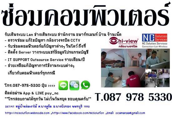 ประสบการณ์การทำงานด้านไอที 15 ปี ทำงาน Outsource IT Support Service Onsite ให้กับบริษัทสร้างบ้าน อสังหาฯ กว่า 5 ปี วางระบบร้านอินเตอร์เน็ตค่าเฟ่ เซิฟเวอร์ ระบบข้อมูล ดูแลแก้ปัญหาให้ ลูกค้า ทุกกรณี เกี่ยวกับการใช้งานด้านคอมพิวเตอร์ รับดูแลให้บริษัท ร้านอินเตอร์เน็ต อาพารท์เมนท์ ทำสัญญาเป็นปี แบ่งจ่ายเป็นรายเดือน ลดภาระค่าใช้จ่าย โดยไม่ต้องจ้างพนักงานฝ่ายไอทีประจำตำแหน่ง แก้ไขงาน ช่วยเหลือลูกค้า ทางโทรศัพท์ เช่น ปริ้นงาน ไม่ได้ เครื่องเปิดไม่ติด หรืออาการเสียอื่นๆ ที่จบทางโทรศัพท์ได้ เพื่อความรวดเร็วในการแก้ปัญหา ทำให้งาน ที่ทำไม่สะดุดหรือเสียเวลาไปมาก ในกรณีที่ต่ออินเตอร์เน็ตได้ จะใช้โปรแกรม Teamviwer รีโมทแก้ไข ให้ลูกค้า เพื่อความสะดวกรวดเร็ว ในการแก้ไขปัญหา ช่วยเหลือลูกค้า วิ่งเข้าแก้ไขที่ทำงาน ภายใน 24 ชม. ในกรณีที่ ไม่สามารถแก้ไขทางโทรศัพท์และรีโมทผ่านอินเตอร์เน็ต โทรศัพท์ติดต่อได้ทุกวัน ไม่เว้นวันหยุดตลอดเวลา http://www.facebook.com/NcSolution