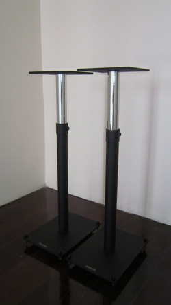 ขาตั้งลำโพงแบบวางหิ้งปรับระดับความสูงได้ตั้งแต่ 20" - 35" แกนท่อนล่าง+เพลทบนและเพลทล่างเป็นเหล็กหนาชุบอะโนไดซ์สีดำด้าน แกนท่อนบนเป็นเหล็กหนาชุบโครเมี่ยมเงางามเลื่อนปรับระดับได้มาพร้อมกับสไป๊ค์เพื่อความเสถียรในการเกาะยึดพื้น
