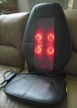 เบาะนวดไฟฟ้า ระบบลูกกลิ้งนวดหลังและเบาะรองนั่งระบบสั่น เบาะนวดไฟฟ้ารุ่นนี้พิเศษที่มีหัวนวดแสงอินฟราเรดให้ความร้อน คลายเส้นเวลานวด สามารถเลือกว่าจะใช้หรือไม่ใช้แสงอินฟราเรดก็ได้