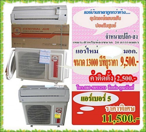 Air แบบติดผนัง 13000 บีทียูเครื่องรับประกันศูนย์ ขายเพียง 9500 บาท