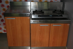 (((ชั้นวางเตา + ตู้ใส่ถังแก๊ส แสตนเลส บานหน้าสีเชอร์รี่)))