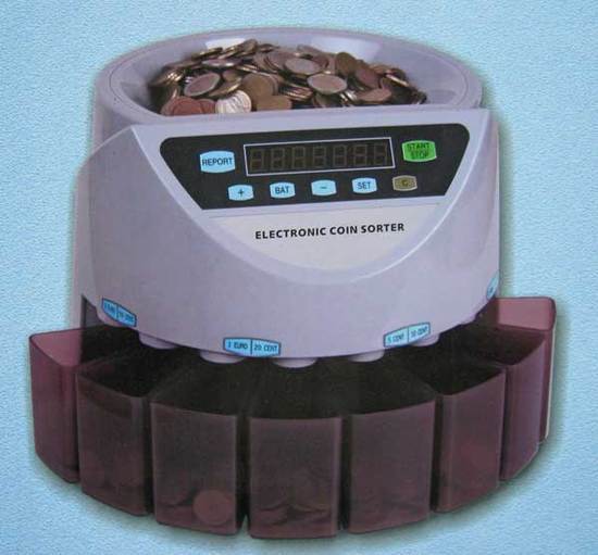 เครื่องแยกเหรียญ สามารถนับและแยกชนิดของเหรียญได้ (นับเหรียญ 2 บาทได้) เพียงเทเหรียญลงไป เครื่องจะคัดและนับเหรียญแยกลงในแต่ละช่องให้ เครื่องแยกเหรียญจะแสดงผลการนับเหรียญแต่ละชนิดและมูลค่ารวมทั้งหมดได้ ใช้งานง่าย สะดวก รวดเร็ว เหมาะสำหรับกิจการ หรือ หน่วยงานที่ต้องนับเหรียญเป็นจำนวนมากในแต่ละวัน ช่วยป้องกันการนับผิดพลาด ประหยัดแรงงานและเวลา
